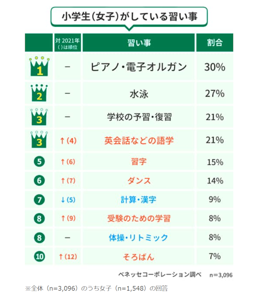 (※参照 ベネッセコーポレーション小学生の習い事調査)