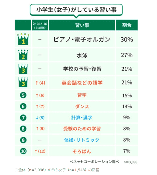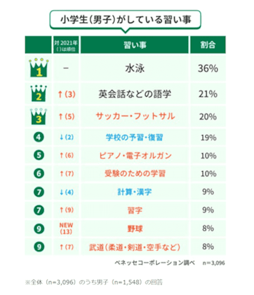 (※参照 ベネッセコーポレーション|小学生の習い事調査)