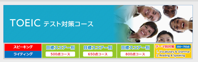 日常英会話やビジネス英会話がメインで、間接的にTOEICの勉強にもなるようなコースは選ばないでください。